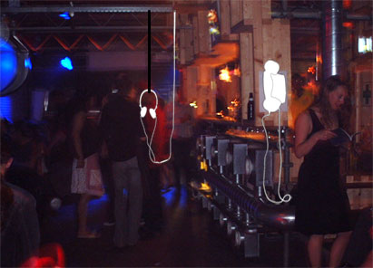 an image of a typical 'party' night at WORM (with an idea of how/where the audio apparatuses would be integrated):