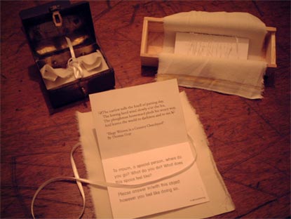 in parallel with the experimentations i have been documenting on the sketches page, i have began giving people boxes which ask a similar question but leaves of course liberty to react upon it in any way or medium, abstract of literal.