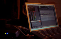 to use layers of audio (voice from interviews) with a low pass filter, resulting in only the lower frequencies being 'passed'.
